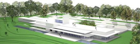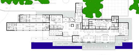El edificio sigue un esquema lineal orientado básicamente hacia las vistas del campo Norte y la Sierra de Madrid, dando la espalda al aparcamiento y a la zona de reserva de la futura autopista.Mantiene un perfil bajo para su integración discreta en el paisaje. Su exterior será de vidrio de baja emisividad y hormigón blanco para armonizar con los antiguos caseríos de las fincas típicas del lugar. Todos los salones están en contacto con el hall y parte de ellos son paso obligado para acceder al Bar y al Restaurante. Esto es muy importante ya que se ha tratado de evitar que los salones se conviertan en un lugar al que nadie acude.Tienen vistas directas sobre los dos green del 18. Aprovechando el acceso de las escaleras a cubierta se ha dispuesto un pequeño espacio-atalaya desde el cual se podrá tener una vista completa de los dos recorridos del Club. El interior del Club deberá tener un ambiente de Casa-Club, cosa que se conseguirá con acabados acogedores en la línea de maderas en pavimentos, techos y empanelados verticales, moquetas, cuadros que recojan las efemérides de la historia del Club, etc. El mobiliario deberá ser el propio de una casa particular confortable huyendo de imágenes más propias de sedes corporativas.El pavimento de las terrazas que dan sobre el Campo de Golf será de tabla de madera para exteriores y la pérgola longitudinal servirá de entramado para una plantación de viña virgen de hoja caduca que de sombra en verano y permita el soleamiento en invierno. Una larga lámina de agua con surtidores servirá para humidificar la sequedad ambiente propia de Madrid. En fases más avanzadas del proyecto se estudiarán medidas de ahorro energético trabajando sobre los materiales de aislamiento, vidrios especiales a estos efectos, utilización de energía geotérmica, paneles solares, etc. Por su orientación será un edificio fresco en verano sin especiales necesidades de consumo energético.Desde el punto de vista estructural se inserta el edificio en una malla reticular de 6.00 x 6.00 m., luces que estimamos económicas y que permiten una modulación estándar de los materiales con la consiguiente economía en los costes. |