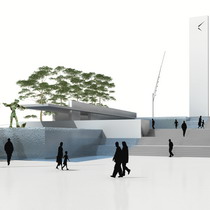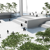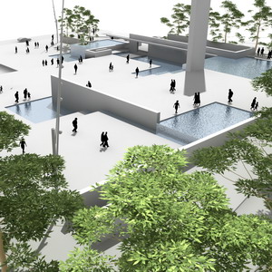 el ámbito de la plaza. Intrínsecamente las plazas importantes no solo han sido espacio urbano para la estancia, y plano con perspectiva sobre la que se sitúan las edificaciones, sino que también han servido siempre de marco para algún monumento simbólico y significado, con alguna pieza escultórica que dé contenido específico a la plaza. Por tratarse de la Plaza de la Artesanía, sería adecuado proponer la colocación de una obra de arte de calidad contrastada específicamente integrada en el agua de los estanques. A modo de avance propondríamos la obra de Salvador Dalí, El Tritón Alado, con dimensiones de 190 x 140 x 100cm. Funcionalmente la entrada al aparcamiento subterráneo, sirve de apoyo y escenario para las láminas y estanques de agua, enmarcando la vista de la plaza en un ambiente sereno y elegante. Las distintas gradas y plataformas horizontales cuidadosamente dispuestas, permiten crear ambientes propicios para el encuentro entre los vecinos, así como zonas para albergar las terrazas de las cafeterías colindantes. Por la tarde noche, los estanques iluminados, las luces indirectas de los muros y solados, así como los mástiles de iluminación, llenarán de vida y seguridad la plaza y los alrededores, creando un sitio de encuentro y referencia en el casco de Alcobendas. La torre del reloj con su altura y verticalidad, se proyecta como un hito de referencia en la trama urbana de Alcobendas que pueda servir como punto de encuentro para quienes pasean por la zona. Las distintas plataformas horizontales de la plaza se van conectando topográficamente con las aceras colindantes, creando recorridos sin barreras arquitectónicas que permiten llegar a las personas con movilidad reducida a todas las zonas de la misma. |