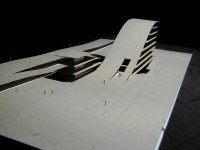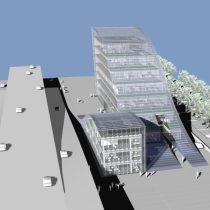 El perfil ondulado de la cubierta desplegada desde planta baja hasta coronación, y la doble piel de las fachadas verticales, inducen un movimento natural del aire que, aprovechando las corrientes de convección, genera economías en el sistema de ventilación forzada. Lamas orientables situadas en cubierta y fachadas, y secciones móviles robotizadas en ambas pieles, permitirán una mayor eficiencia energética. Se preven también paneles fotovoltaicos de apoyo al consumo de energía eléctrica. |