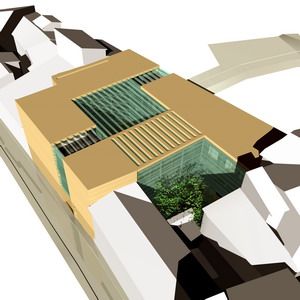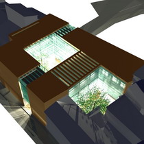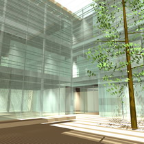 | The building of institutional character is split in two and inserts the new headquarters in the city grid with a public space, a patio, between the two main volumes. The garden patio has a glazed roof to encourage social intercourse and enhance city life and urban character The outside of the complex is austere while the inside is glazed and animated.A link between the two edifices is provided in first and second floors above ground level.The interiors form a sort of cluster around the patio. A 4.00 x 4.00 meter grid structures the geometry of the proposal. |