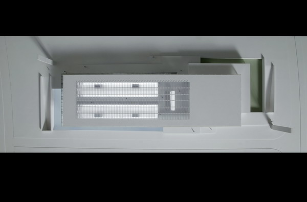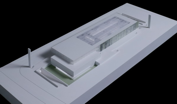 Al existir una inevitable ambigüedad sobre los posibles caminos de aproximación al edificio, se plantea una solución en la que se puede acceder al vestíbulo principal del mismo desde direcciones diametralmente opuestas. Resolver el programa en el menor número de plantas posible, buscando el mayor contacto de estas con el viario exterior, nos ha llevado a distribuir el edificio en tres plantas, situando los acceso principales en la planta intermedia. El vestíbulo principal articula dos cuerpos bien diferenciados: el mercado propiamente dicho y el supermercado, cafetería y gimnasio. El cuerpo del mercado se resuelve con una envolvente ligera de gran luminosidad, mientras que el cuerpo del supermercado se resuelve con un volumen de carácter más hermético. Buscando enriquecer la conexión del mercado con el parque adyacente, se propone un vidrio serigrafiado de protección solar, de temática vegetal, para las fachadas del sudoeste y del noroeste. La trama estructural se basa en una retícula de 8m. x 8m. en aparcamientos y zonas de carga y descarga. Para las plantas superiores la propuesta es más diáfana, contando con una nave central de 16m. Todas las instalaciones del edificio se resuelven a nivel de subsuelo, evitando la ubicación de maquinaria en cubierta. |